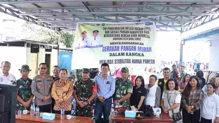 Dalam gerakan pangan murah serentak, Pemkab Dairi yang bekerja sama dengan Bulog Kabanjahe menyalurkan 2400 paket untuk 15 kecamatan. Untuk harga jual, per paket sebesar Rp. 74.000 dengan rincian beras 5 kg dan 1 liter minyak kita. Gerakan pangan murah di ikuti oleh 4.302 kecamatan seluruh Indonesia. Sedangkan untuk beras, terdapat 43.665 ton yang sudah pesan ke Bulog dan menjadi penyaluran tertinggi. (Maya s)