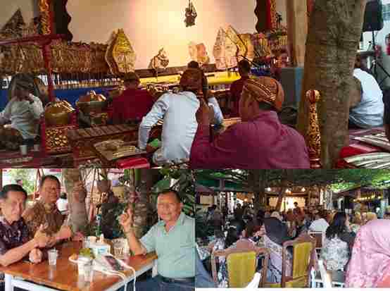 Semua pelanggan dan tamu undangan menyantap makanan dan minuman segala minuman seperti, minuman just, minuman kopi, minuman wedang jahe dan lain lainnya sambil menikmati hiburan pagelaran wayang kulit dengan penuh arti.