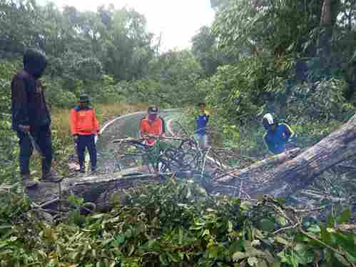 Pakpak Bharat, NusaNEWSTV.com – Para petugas dari Badan Penanggulangan Bencana Daerah bersama Tagana Dinas Sosial Pakpak Bharat, memotong dan membersihkan pohon besar yang melintang menutup badan jalan di Lae Gaman, desa Simerpara, kecamatan Pergetteng-Getteng Sengkut, minggu, 28 september 2025.