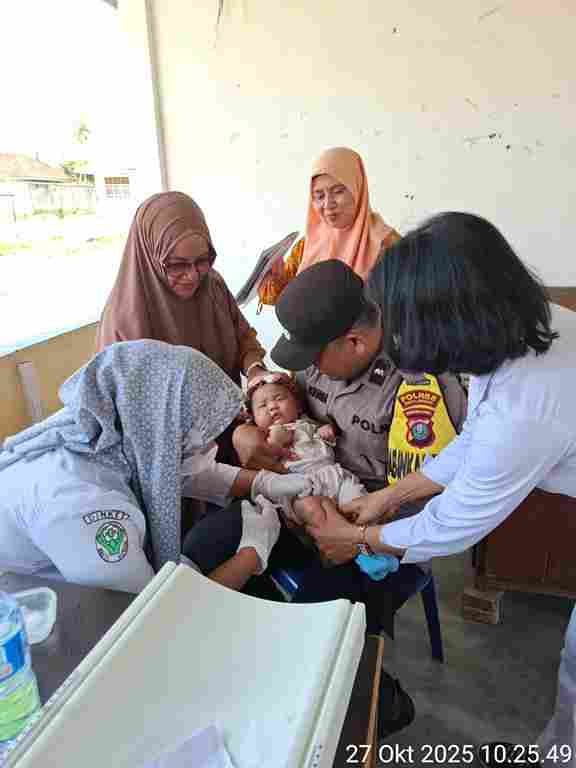 Dalam keterangannya, Aipda H. Sinaga menyampaikan bahwa kegiatan imunisasi berjalan dengan aman, tertib, dan penuh antusiasme dari masyarakat. “Kami dari Polri hadir untuk memastikan kegiatan berjalan lancar dan kondusif. Kesehatan anak adalah masa depan bangsa, sehingga kami ingin turut mendukung penuh pelaksanaan imunisasi ini,” ucap Aipda H. Sinaga di sela kegiatan.