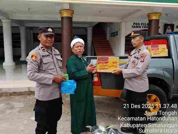 Simalungun, NusaNEWSTV.com – Kepedulian Polri terhadap korban bencana alam kembali terwujud nyata. Polsek Tanah Jawa Polres Simalungun menyalurkan bantuan kemanusiaan kepada korban bencana melalui Persulukan Tuan Guru Batak di Jawa Tengah, Kecamatan Tanah Jawa, Kabupaten Simalungun, pada Minggu (21/12/2025).